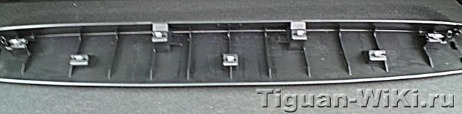 2. Боковые накладки сначала дергаем сверху (одна защелка), затем тянем вбок (две защелки), потом вытаскиваем из нижней накладки вверх. На фото снятая накладка с обратной стороны.
